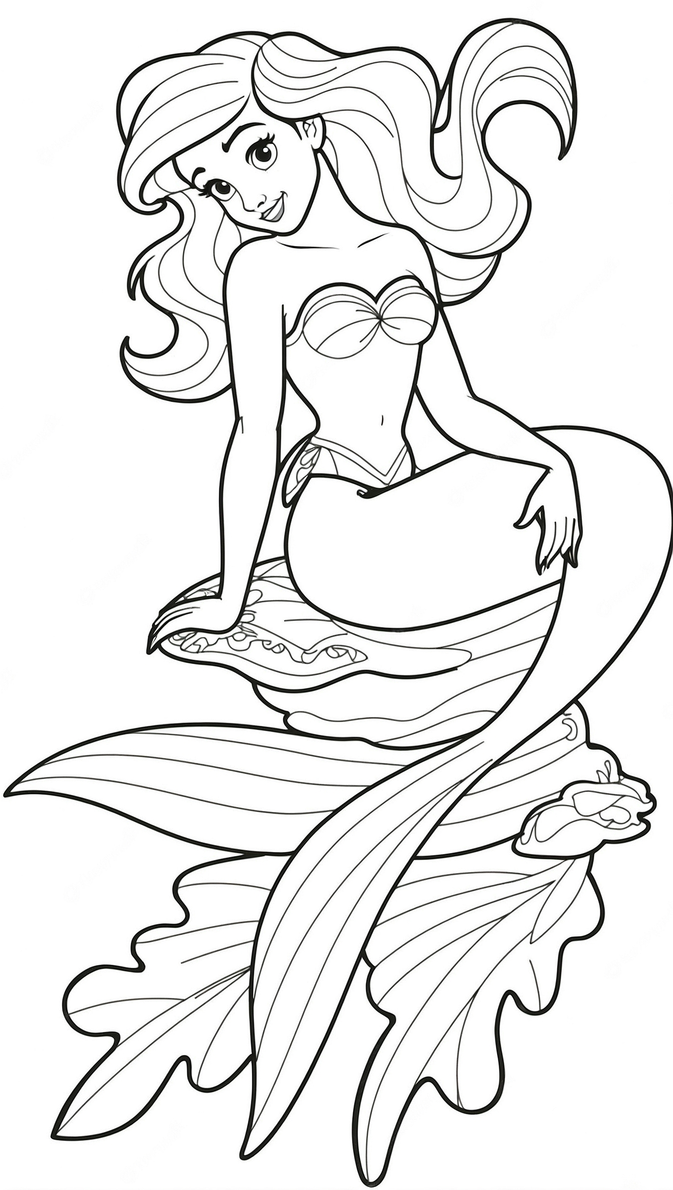 Um retrato encantador da princesa Ariel pronto para ser colorido.