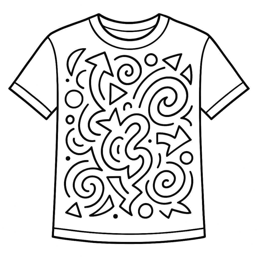 Desenho simples de uma camiseta básica de manga curta, ideal para começar a colorir.