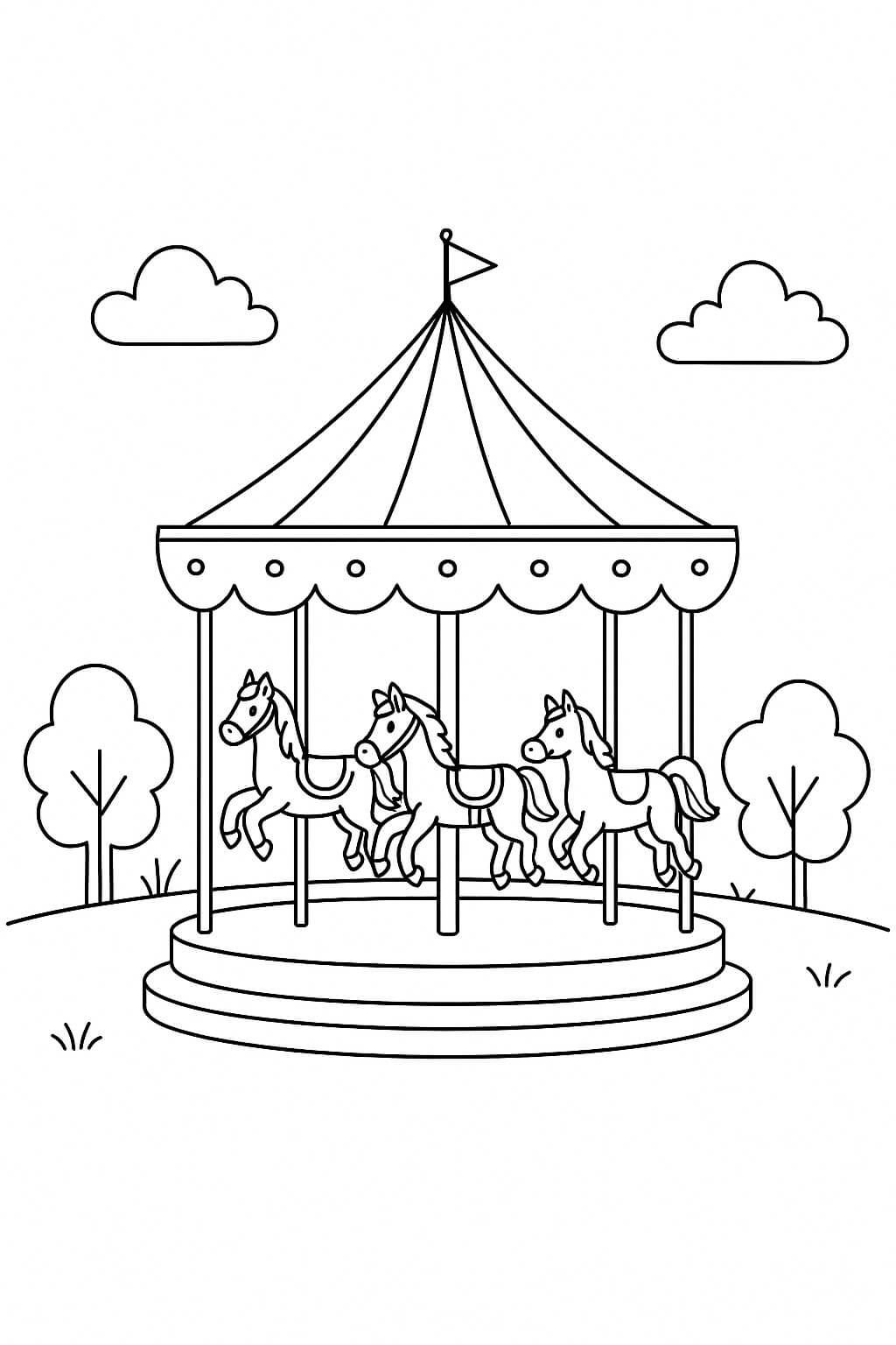 Um carrossel clássico com cavalos, perfeito para quem busca um desenho tradicional.
