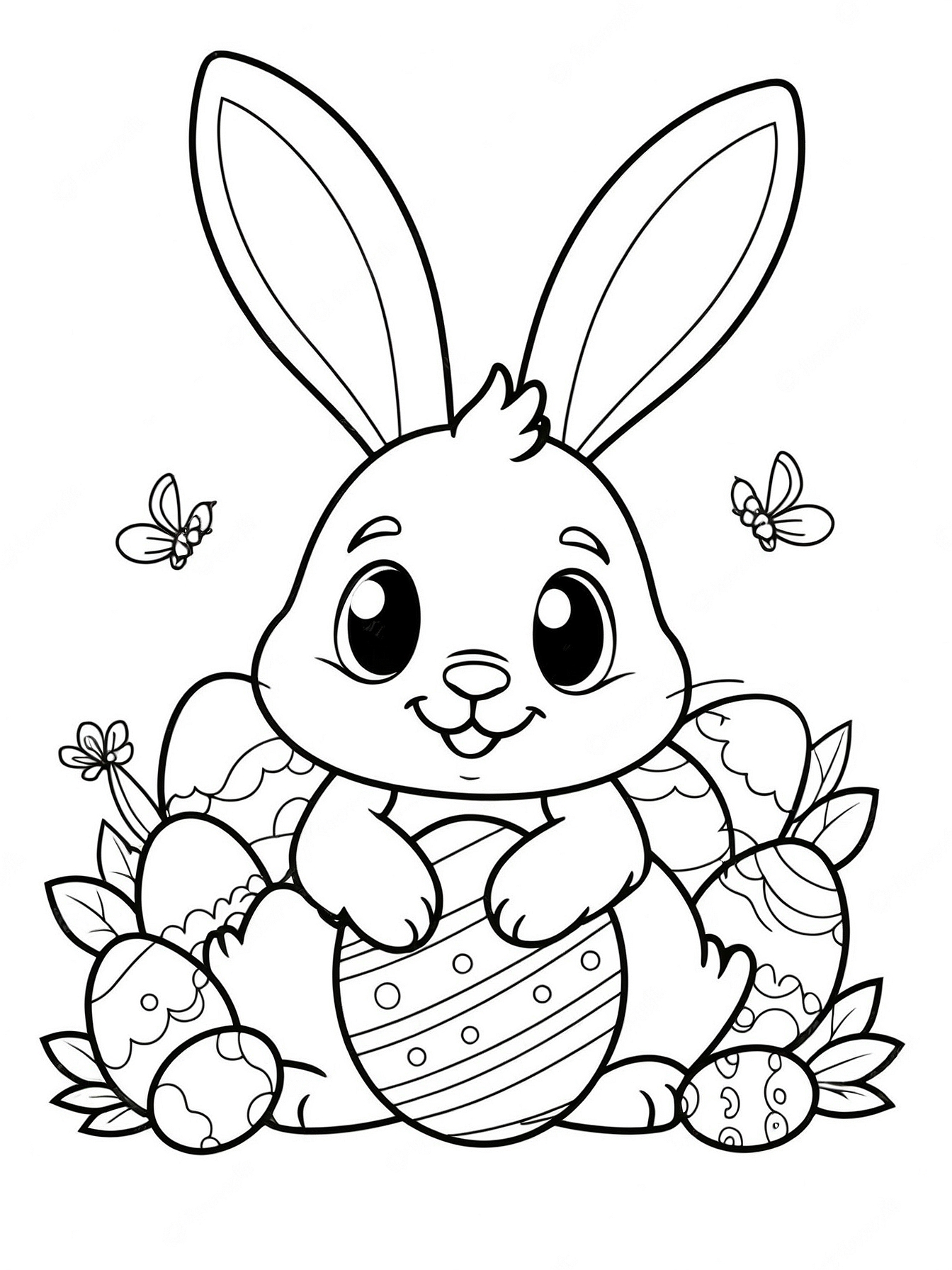 Pinte este coelhinho da Páscoa com seus ovos coloridos. Deixe a sua imaginação voar e crie um desenho cheio de alegria!