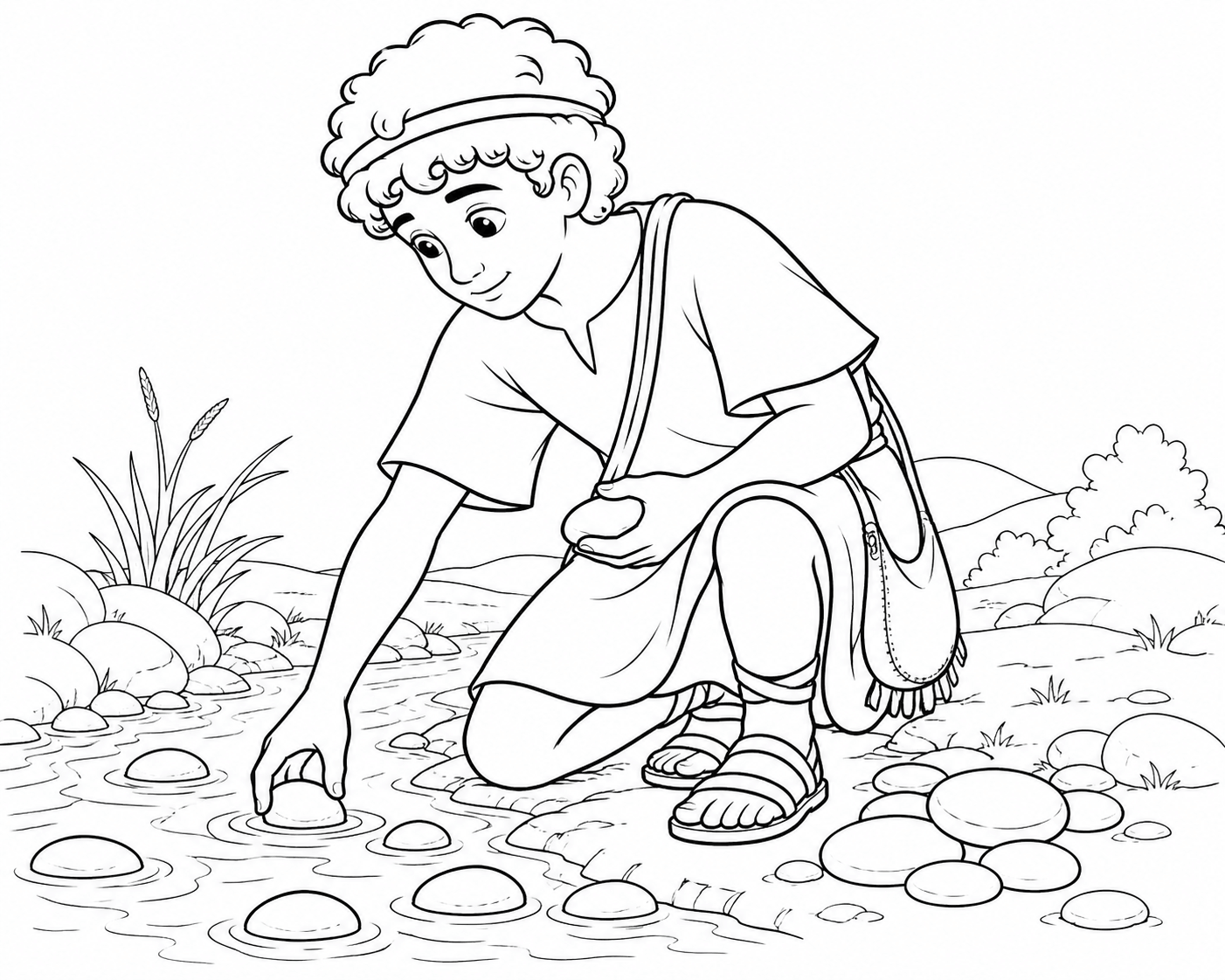 Davi escolhendo pedras para batalha para colorir