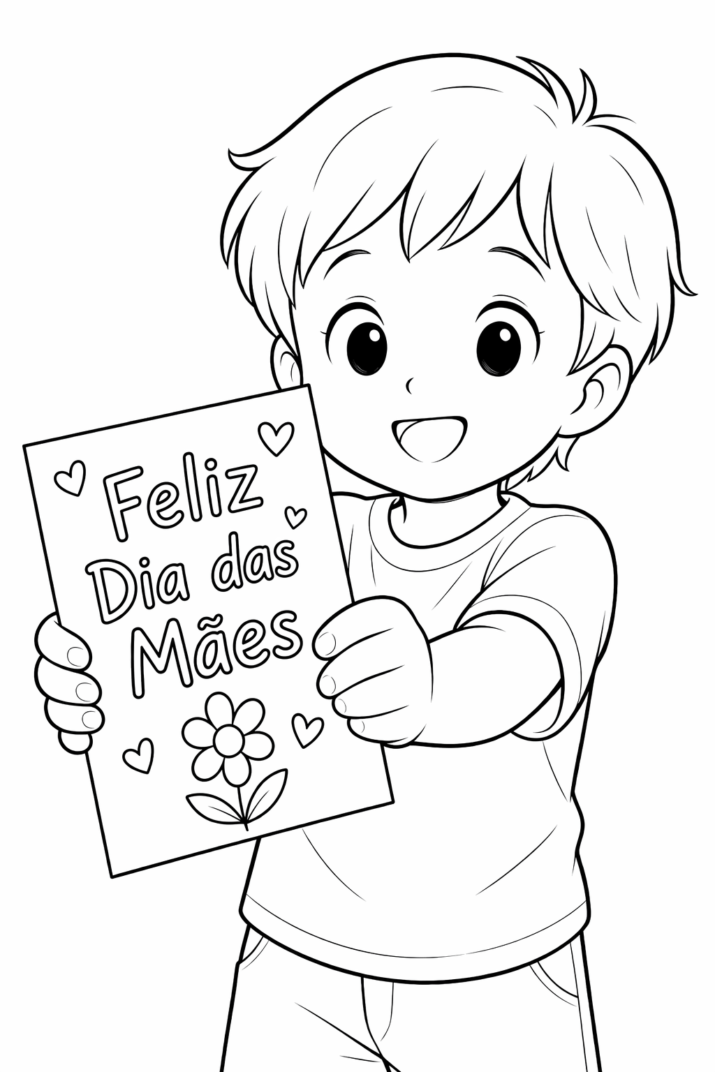 Um lindo cartão de Dia das Mães com filho, perfeito para colorir e transformar em uma homenagem carinhosa e personalizada.