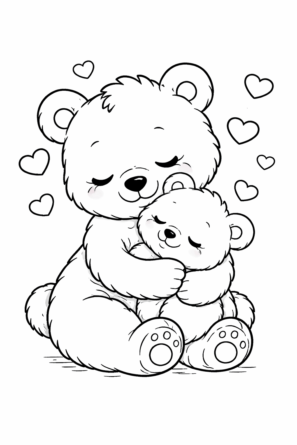Uma ursinha mãe abraçando seu filhote em uma cena muito fofa, perfeita para celebrar o amor entre mãe e filho.