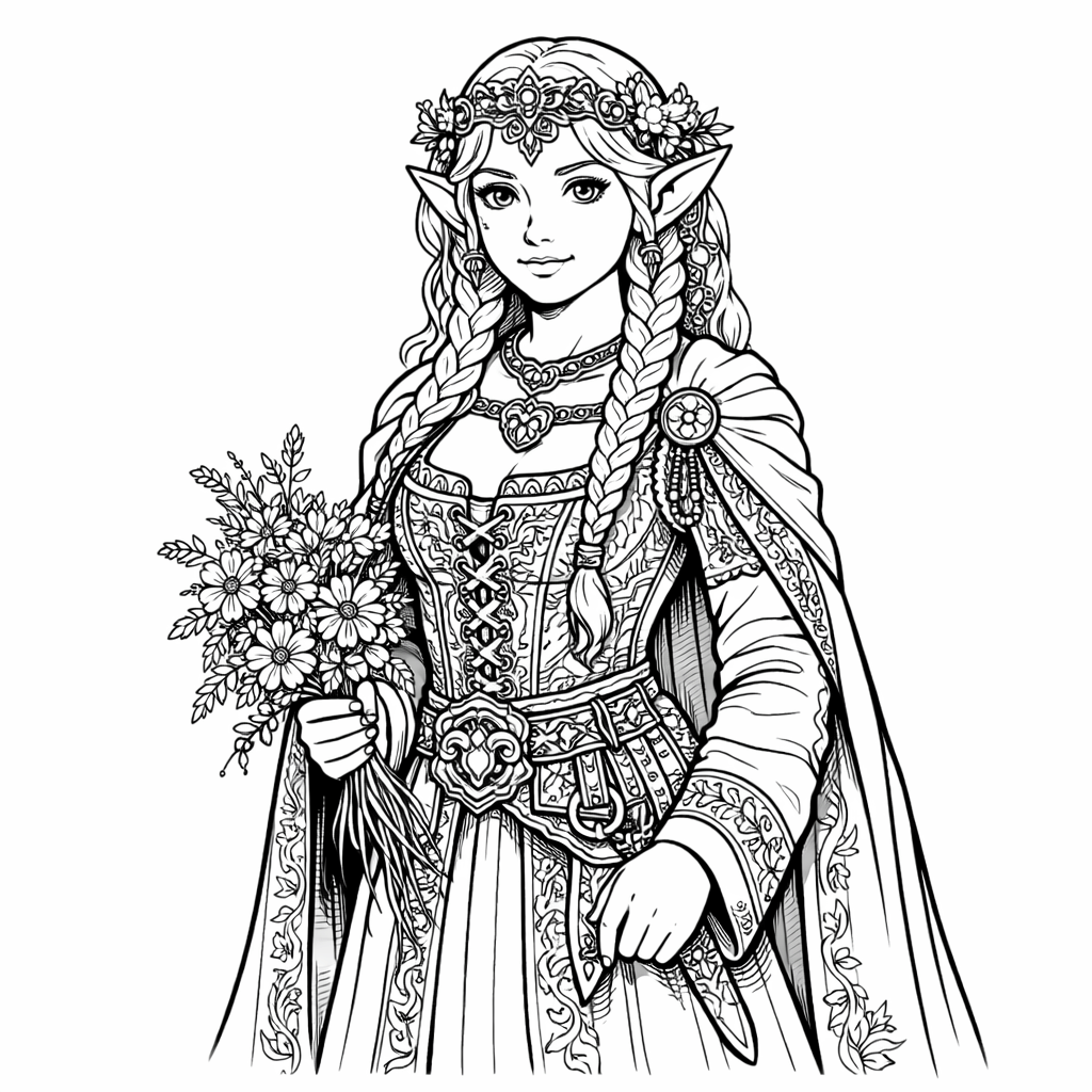 Duende mulher elfa para colorir