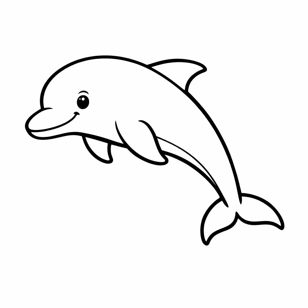 Desenho clássico de golfinho para colorir, ideal para trabalhar tons de azul e criar cenários marinhos.