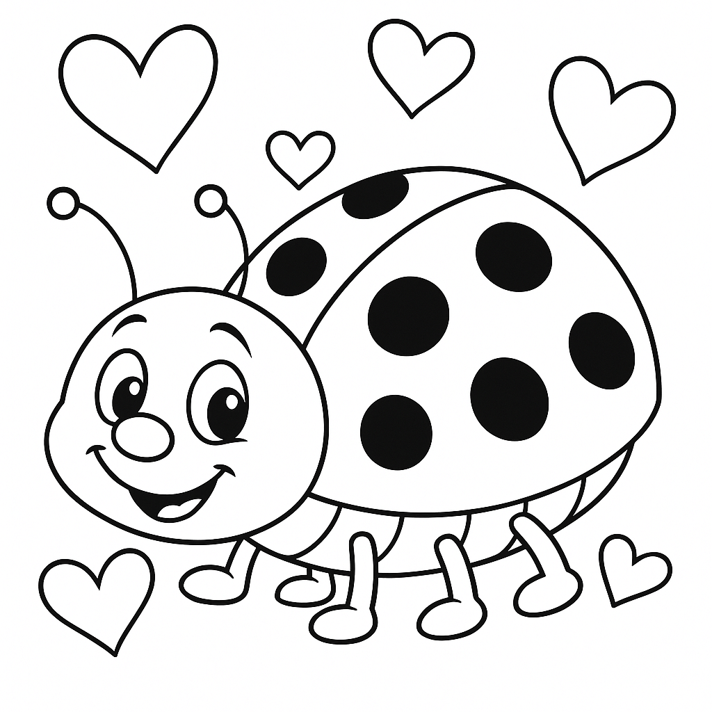 Joaninha com corações para colorir