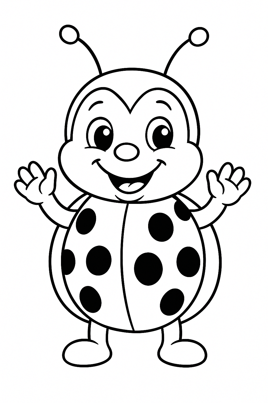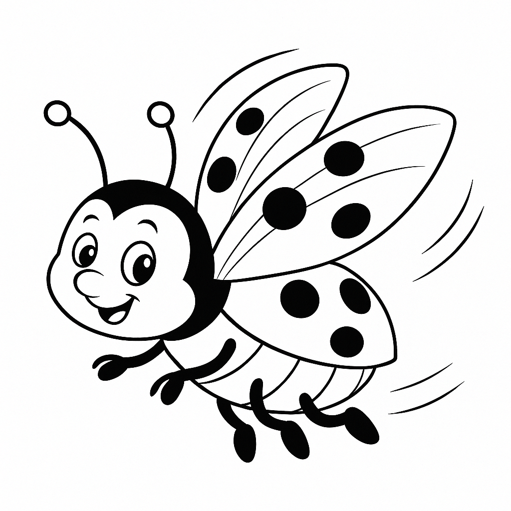 Joaninha em estilo cartoon com olhos grandes e sorriso animado.