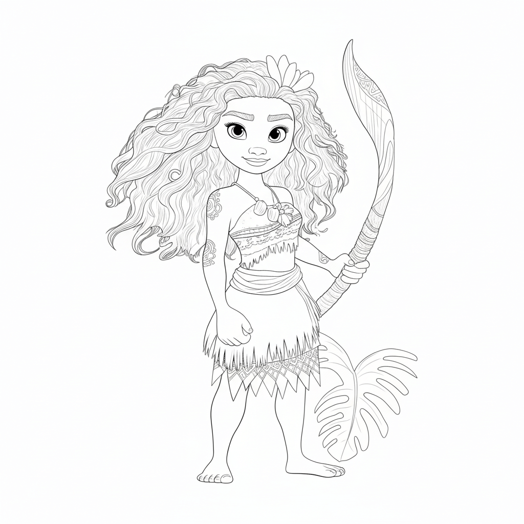Desenho simples e encantador de Moana. Ideal para crianças pequenas praticarem pintura.