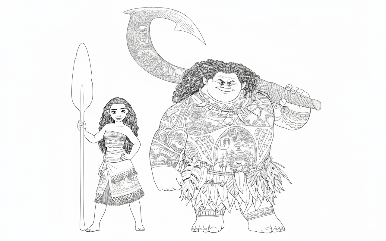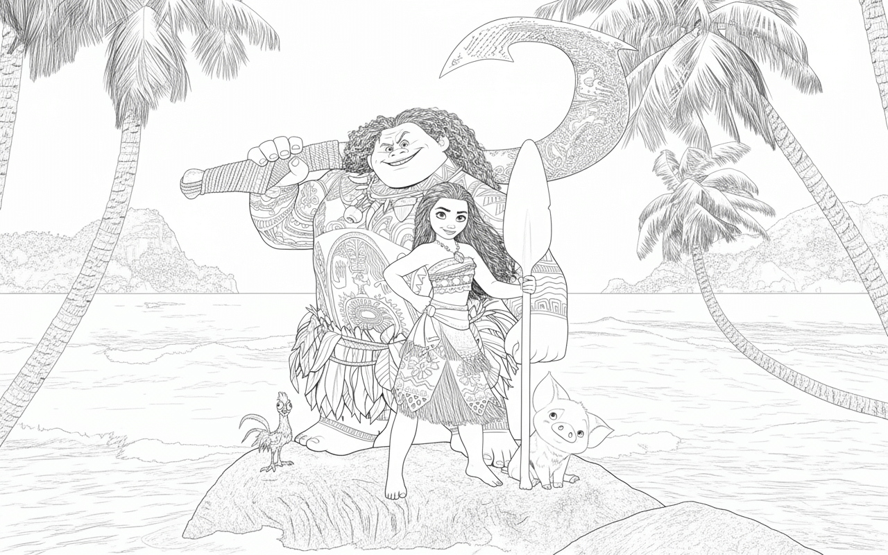 Aventure-se pelo oceano com Moana e seus amigos nesta coleção encantadora de desenhos para colorir! São ilustrações inspiradas no filme da Disney, perfeitas para crianças e fãs da heroína destemida das ilhas.