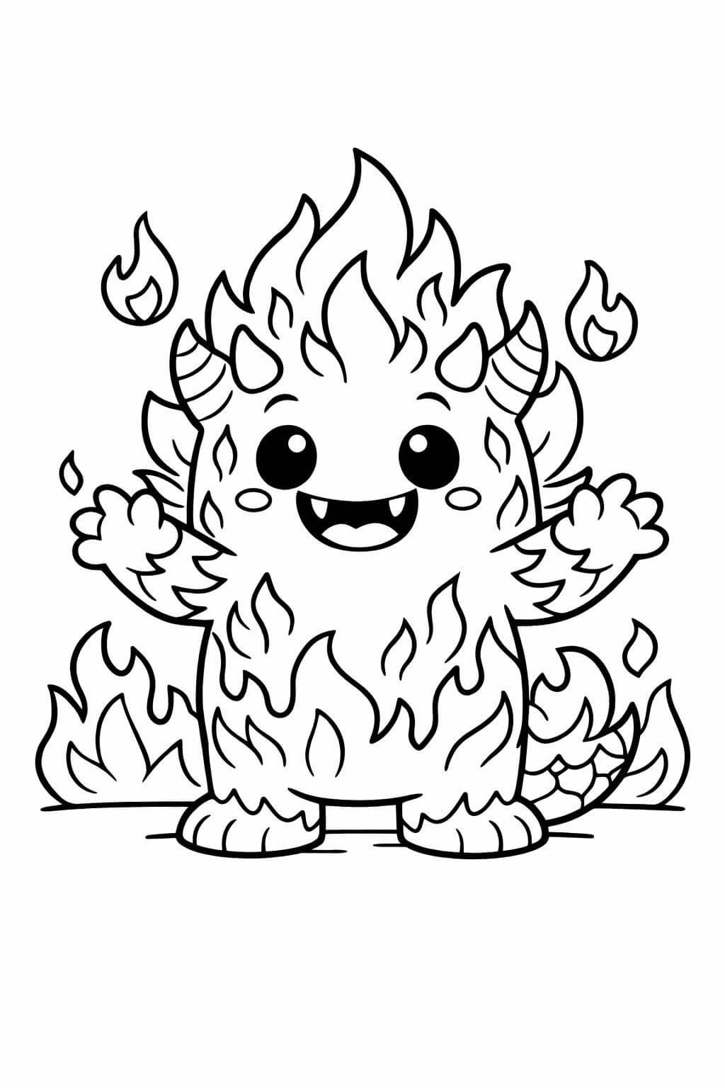Um monstro feito de fogo e chamas! Use vermelho, laranja e amarelo para criar um efeito bem quente.