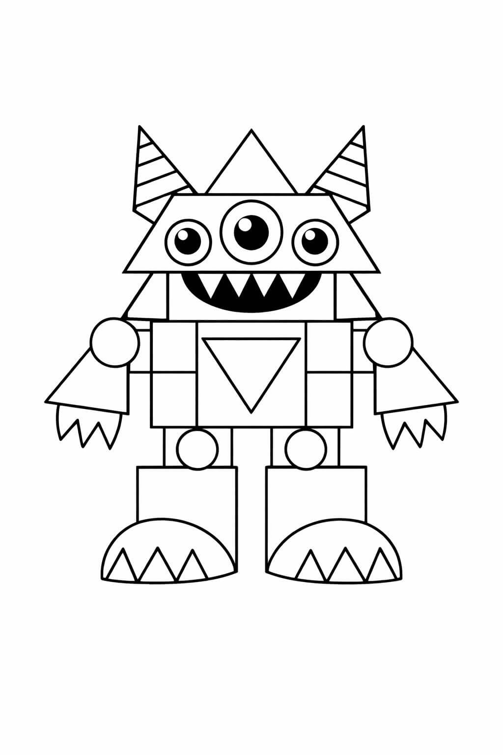 Um monstro com formas geométricas! Ótimo para brincar com padrões, listras e combinações de cores.
