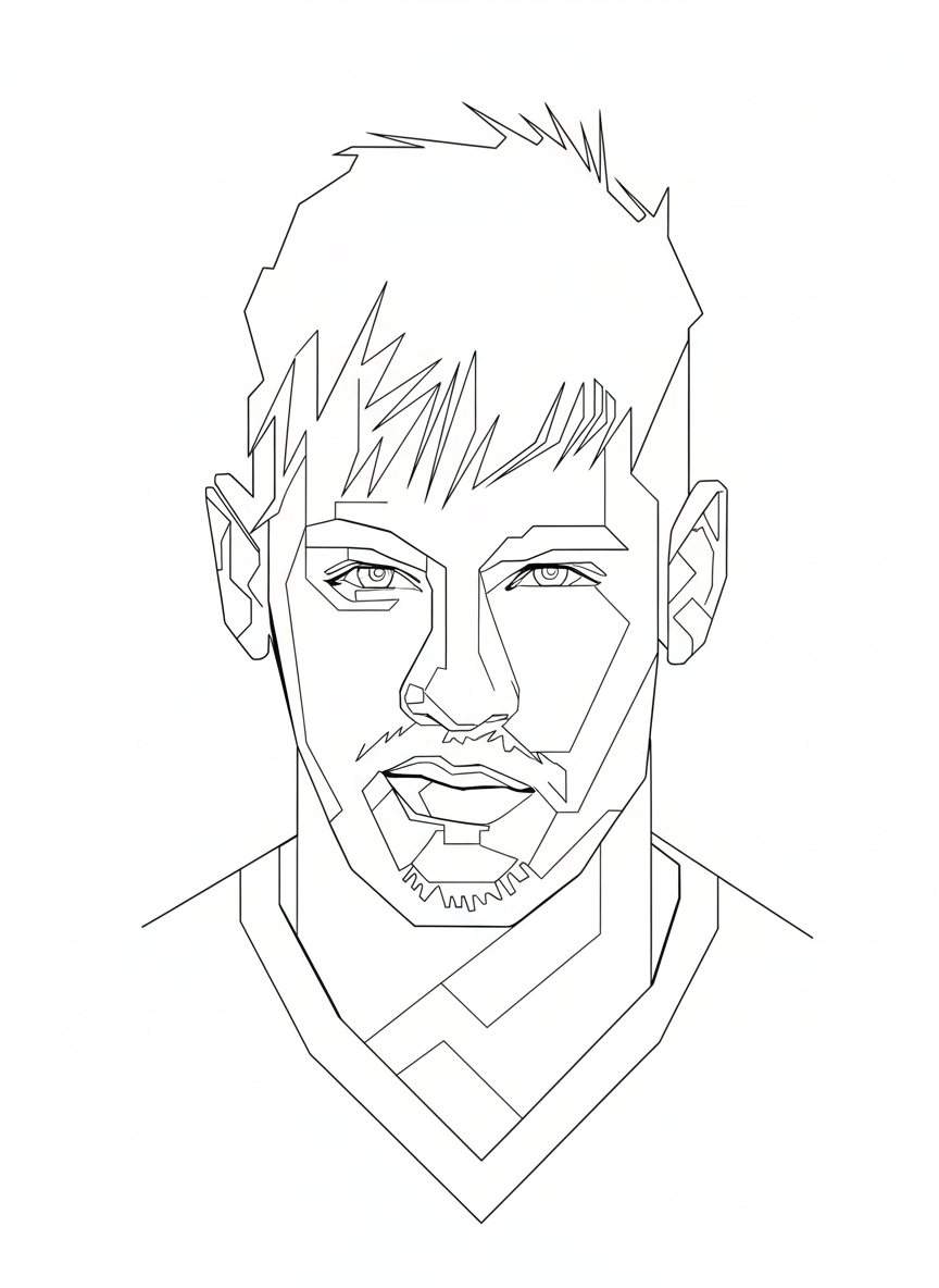 Uma versão estilizada do Neymar em forma de personagem animado. Divertido e fácil de pintar!