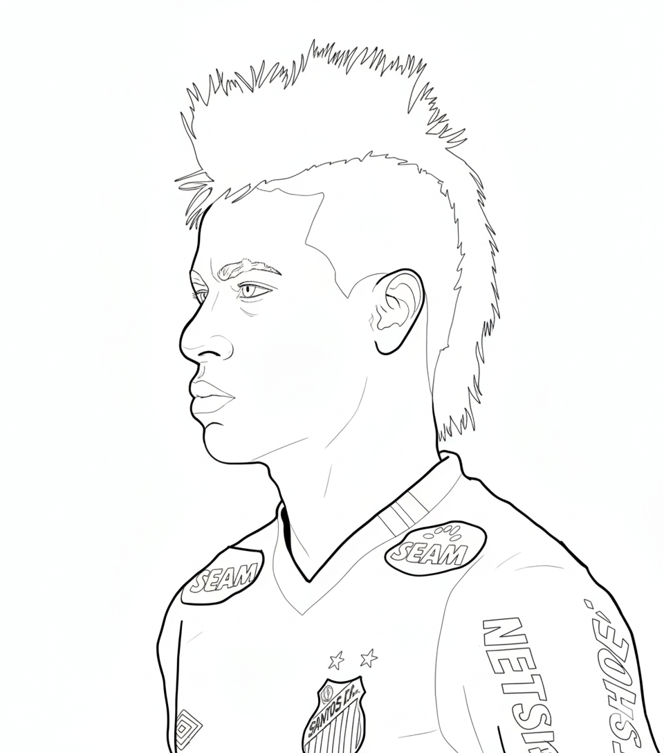 O rosto detalhado de Neymar, ideal para praticar sombreamento e realismo.