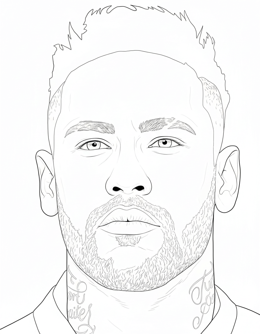 Desenho simples de Neymar pronto para ser colorido com seu toque de criatividade.
