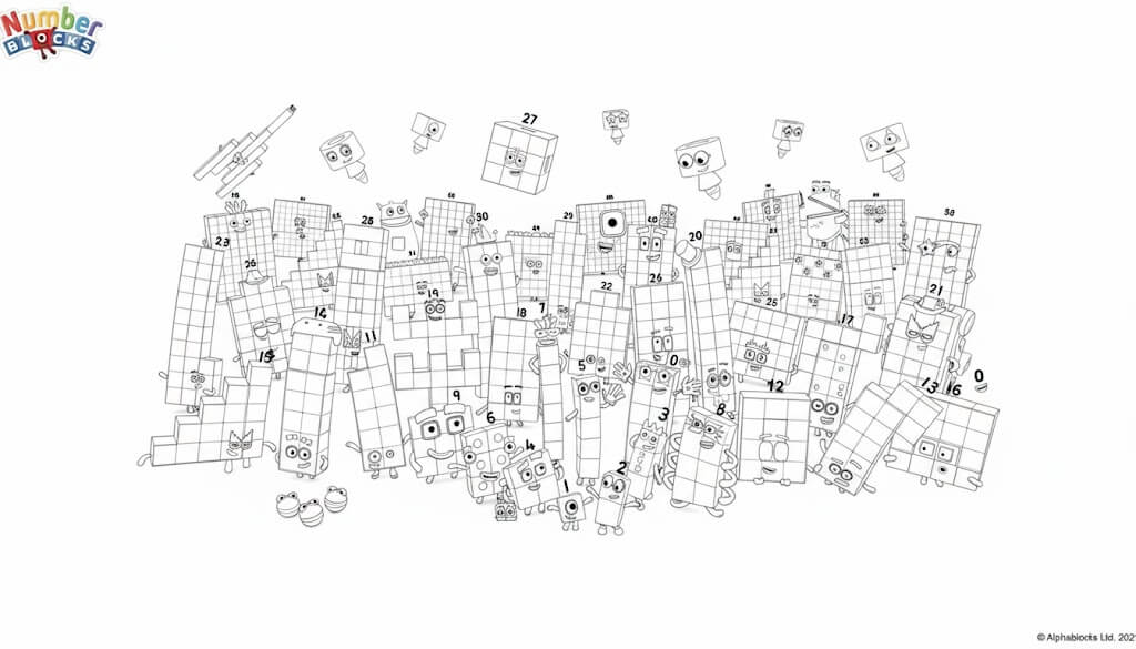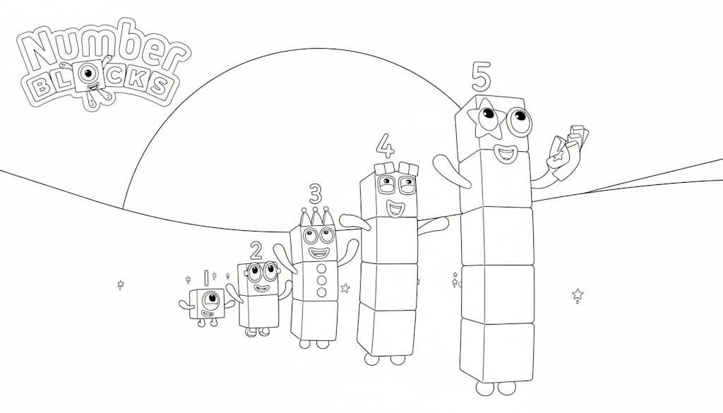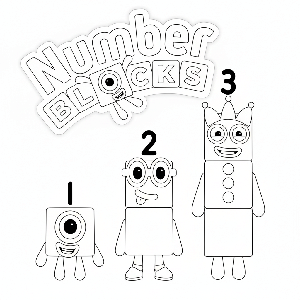 O logotipo dos Numberblocks para colorir, perfeito para identificar a turma dos números!