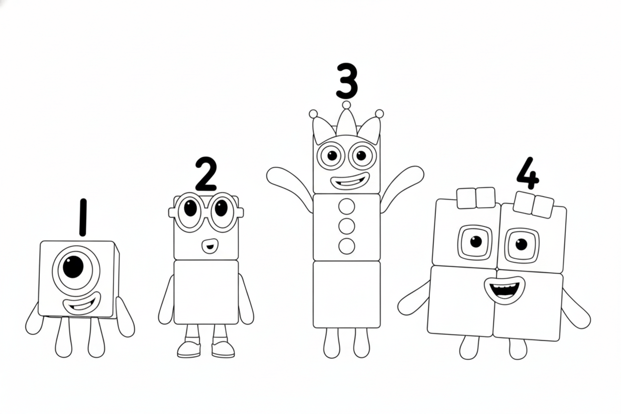 Numberblocks em quatro para colorir