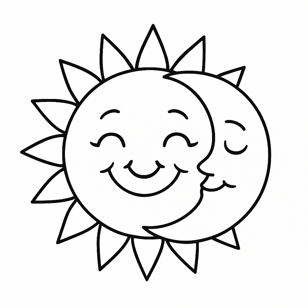 Sol e lua juntos em harmonia, representando o ciclo do dia e da noite.