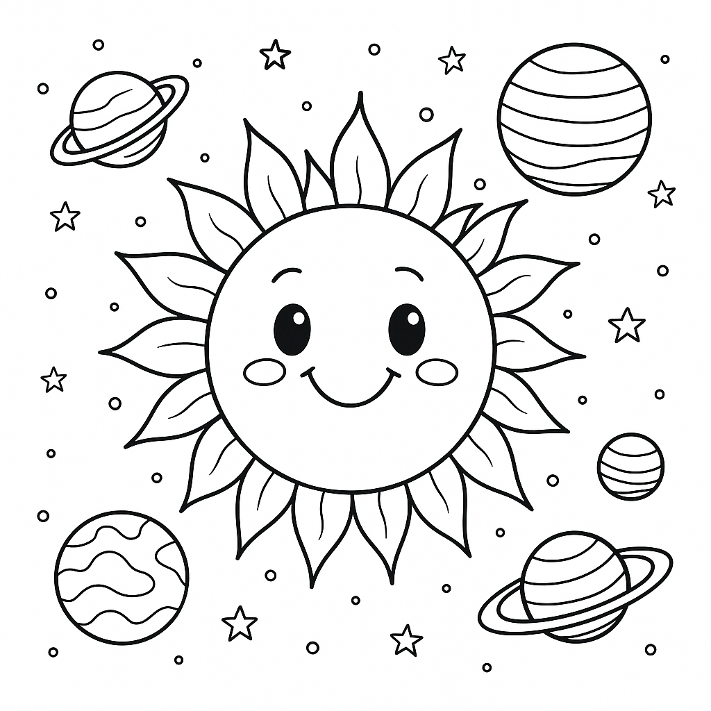 O sol no centro de um sistema com planetas orbitando, pronto para explorar.