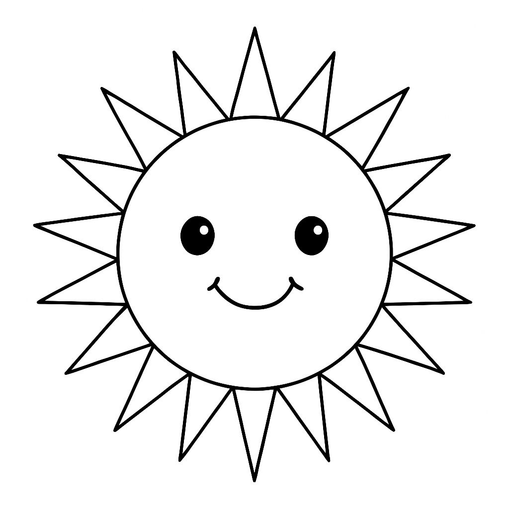 Um desenho simples de sol com raios, perfeito para quem está começando a colorir.