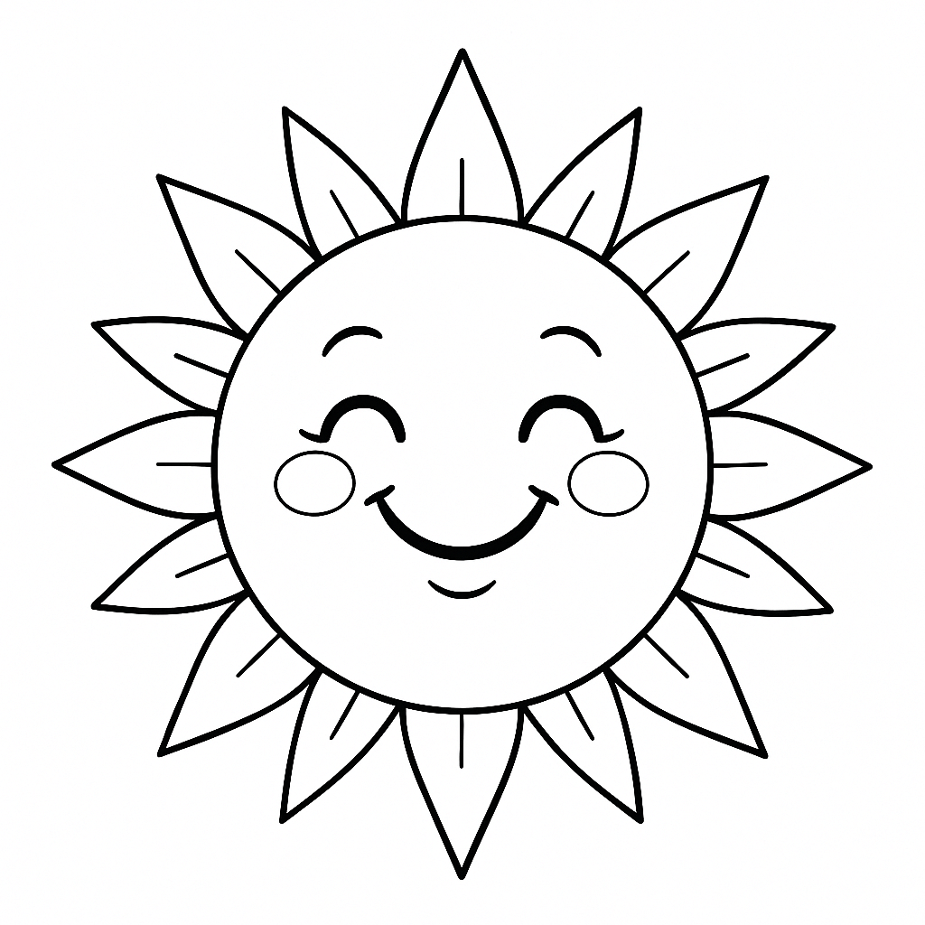 Um sol feliz e sorridente com rosto simpático e raios suaves.