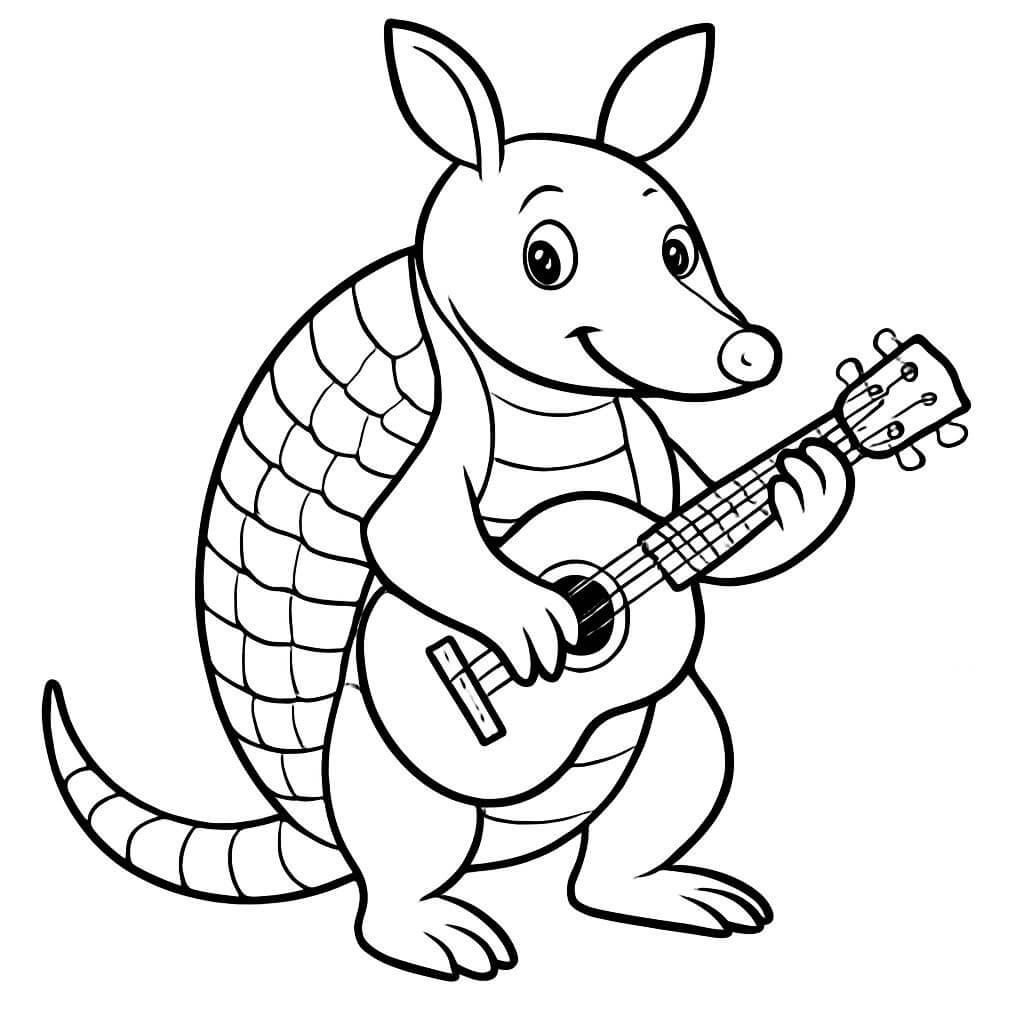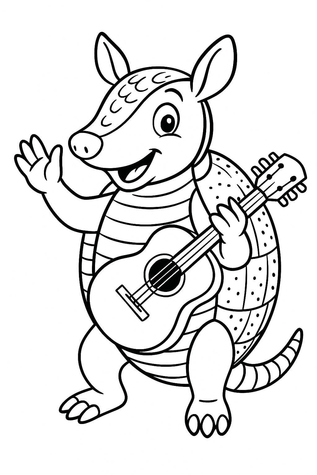 Tatu tocando violão para colorir