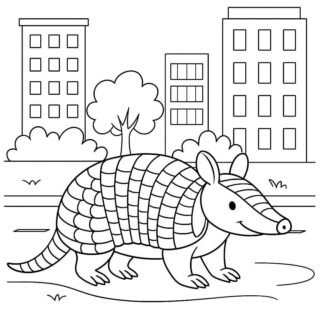 Tatu na cidade para colorir