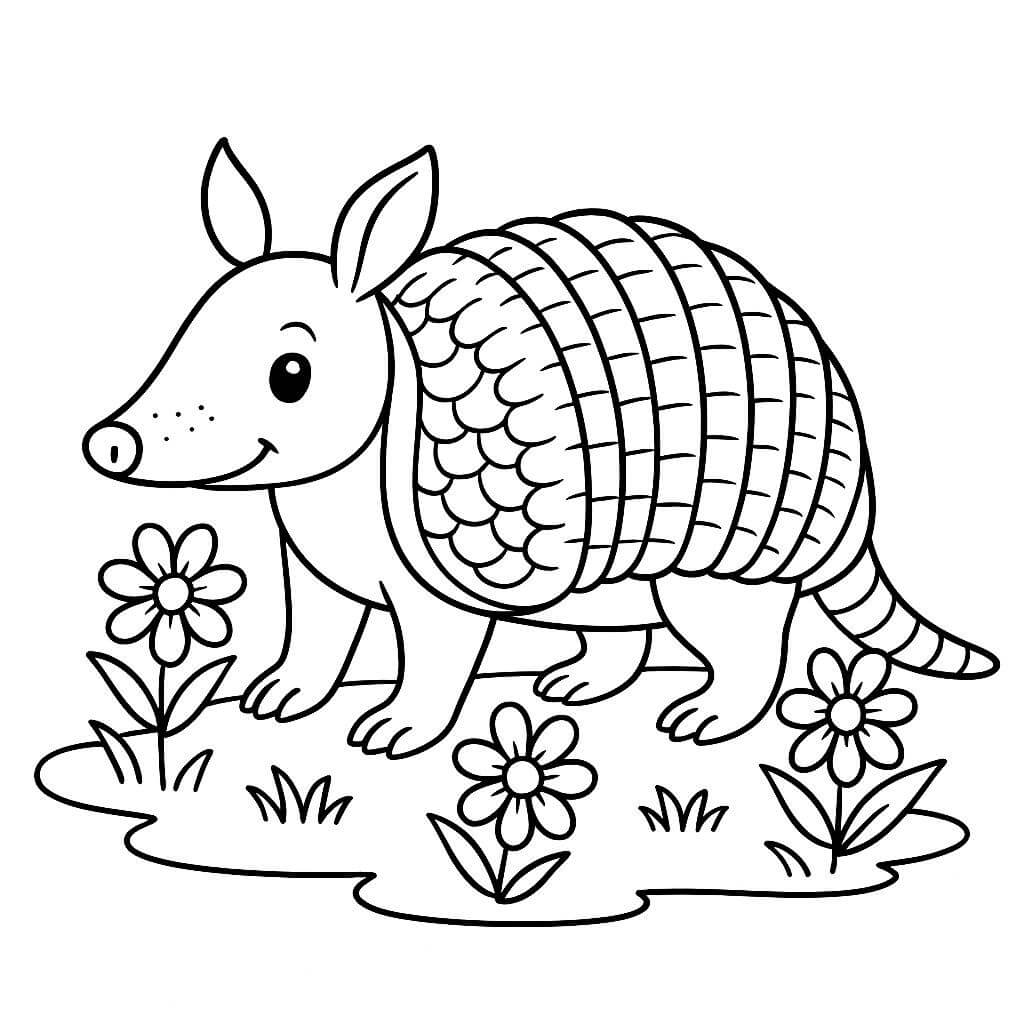 Tatu com flores para colorir
