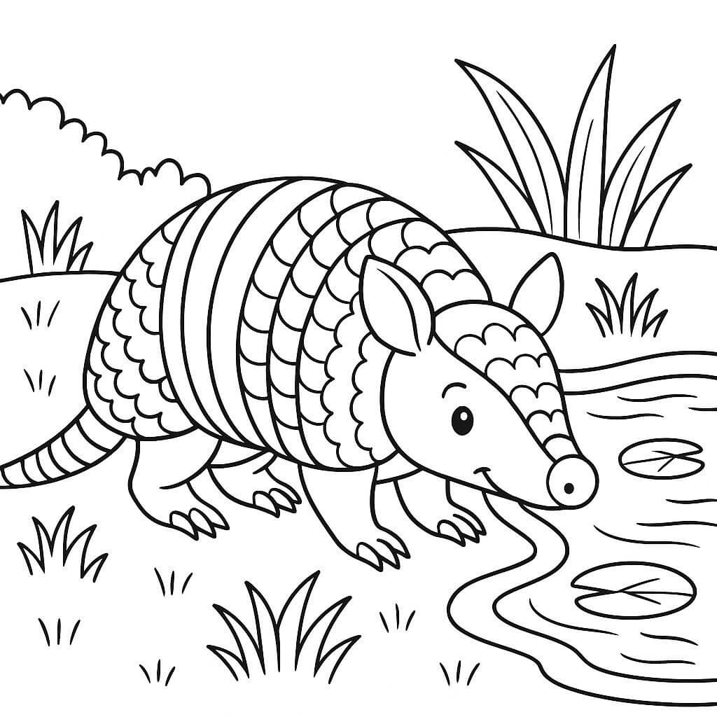 Tatu perto do lago para colorir