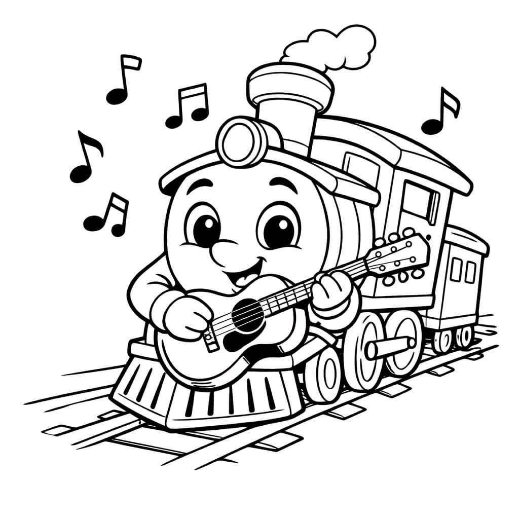 Trem guitarrista para colorir