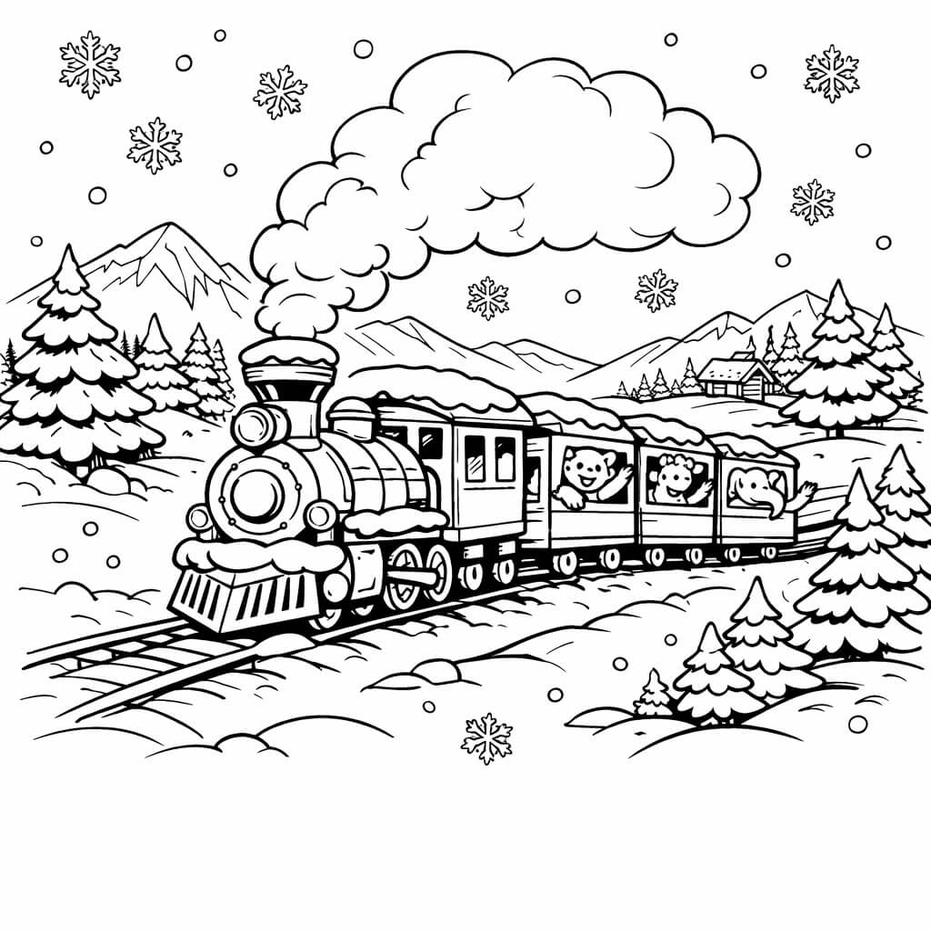 Trem no inverno para colorir