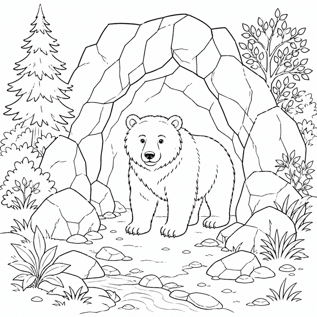 Urso na caverna para colorir