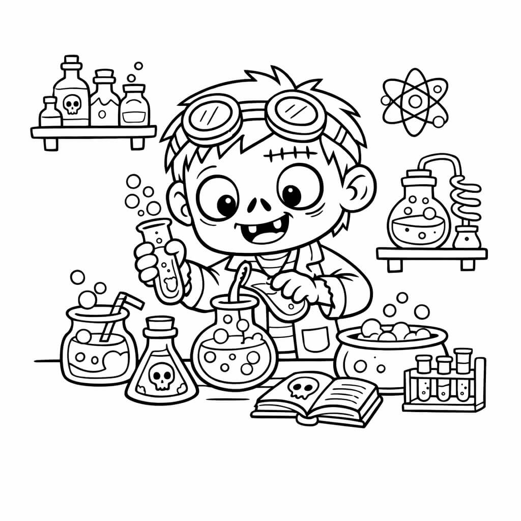 Zumbi cientista para colorir