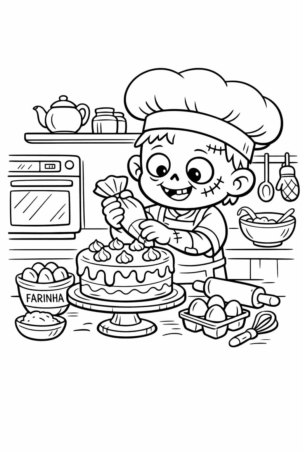 Zumbi cozinheiro para colorir