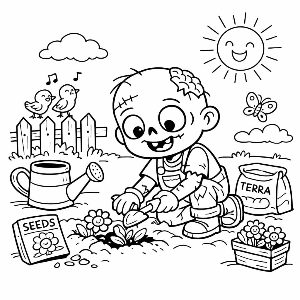 Os zumbis também podem ser engraçados e cheios de aventuras! Nesta coleção de Zumbi para colorir, você encontrará zumbis fofos, músicos, cientistas, piratas e até zumbis brincando com crianças e animais. Perfeito para o público infantil, com muita diversão e zero sustos!
